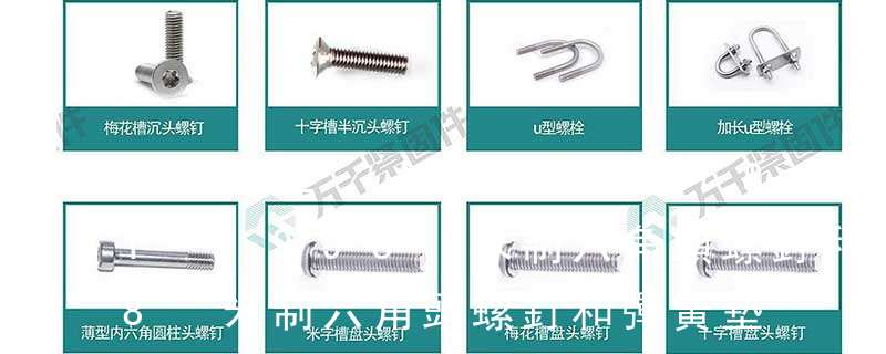 11. 組合件和連接副:組合件是指組合供應的一類緊固件,如將某種機器螺釘(或螺栓、自供螺釘)與平墊圈(或彈簧墊圈、鎖緊墊圈)組合供應;連接副指將某種專用螺栓、螺母和墊圈組合供應的一類緊固件,如鋼結構用高強度大六角頭螺栓連接副。