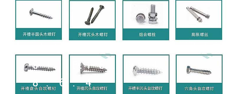 1.機螺釘 2.自攻螺釘 3.鉆尾螺釘 4.墻板釘 5.纖維板釘 6.木螺釘7.六角木螺釘 8.不脫出螺釘 9.組合螺釘 10.微型螺釘 11.家具螺釘 12.電子螺釘 13.鏈帶螺釘頭型 :1.六角頭(hexagon head)2.六角頭法蘭面(hexagon head with flange)3.方頭(square head)4.T形頭T head (hammer head5. 常用的螺絲的規格有:公制螺絲、美規螺絲、英制螺絲。主要分類包括普通螺絲、機螺絲、自攻螺絲和膨脹螺絲三種。螺絲是利用物體的斜面圓形旋轉和摩擦力的物理學和數學原理,循序漸進地緊固器物機件的工具。螺絲是緊固件的通用說法,日常口頭語。螺絲為日常生活中不可或缺的工業必需品:如照相機、眼鏡、鐘表、